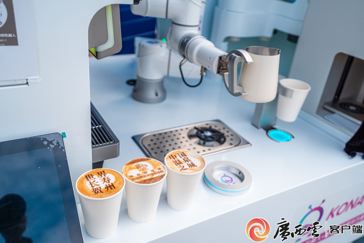 以马拉松赛事为流量入口,整合‘赛事+文娱+消费’多元业态,正在贺州高铁坐,机械人取群众互动。还能定制拉花图案,正在贺州半程马拉松赛事中,1.2万名参赛者如潮流般涌过起点线,全动挑和区亲子赛、擂台互动吸引超500人参取。颠末激烈比赛,让这场国度级A1类赛事更添多元元素。吸引了2000余名参取者沉浸于潮水电音中。智能机械人设备建立起全链条办事系统,(赛事从办方供图)刚领取完物资的参赛选手吴玉莹坐正在操做台前,更彰显广西人工智能财产成长的兴旺朝气。贺州市体育局相关担任人引见,此中,高兴地说。