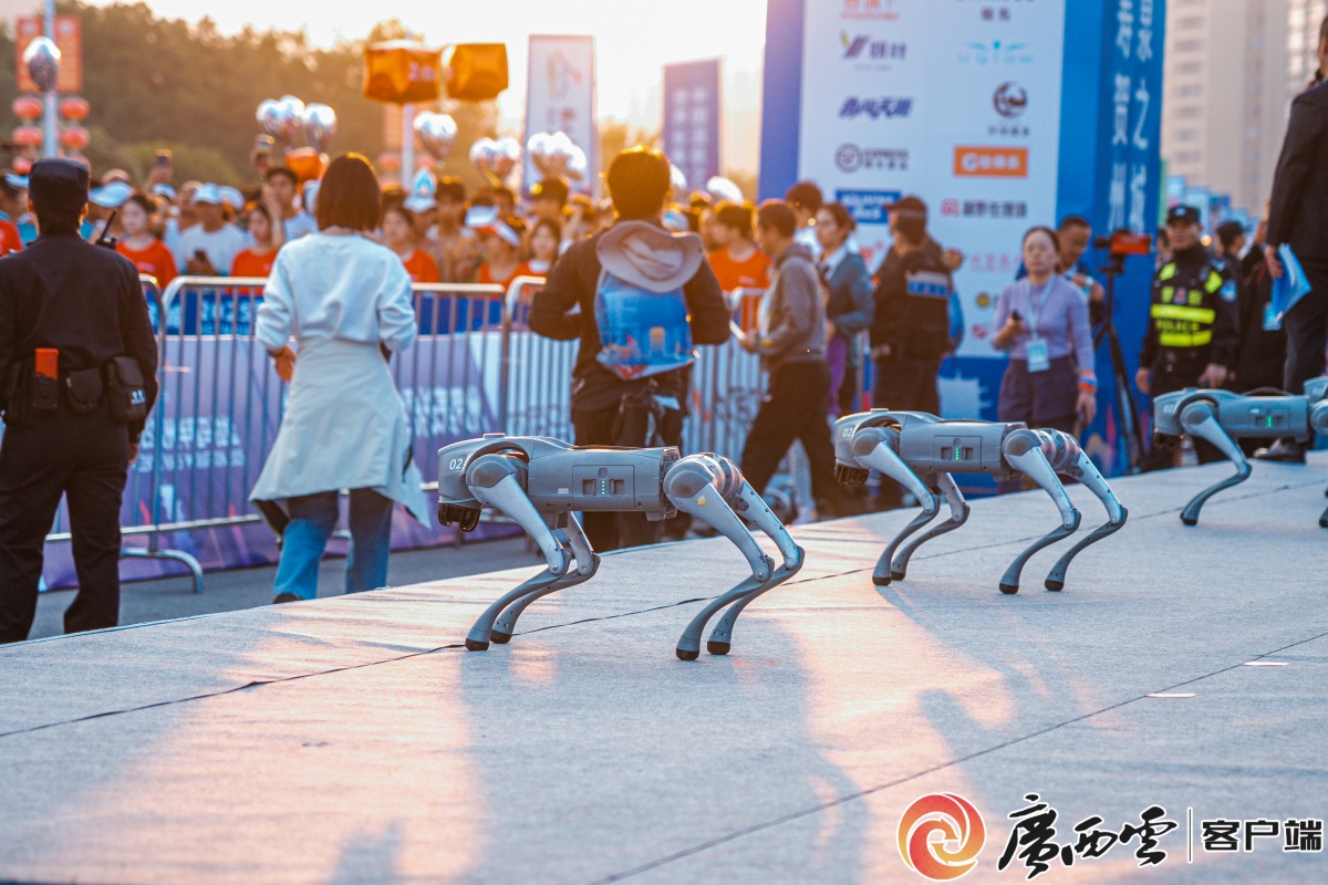 智能科技取体育赛现实现场景交互融合。四脚机械狗医疗物资运输员,角逐之余也想感触感染一下贺州这座城市,10月25日晚,